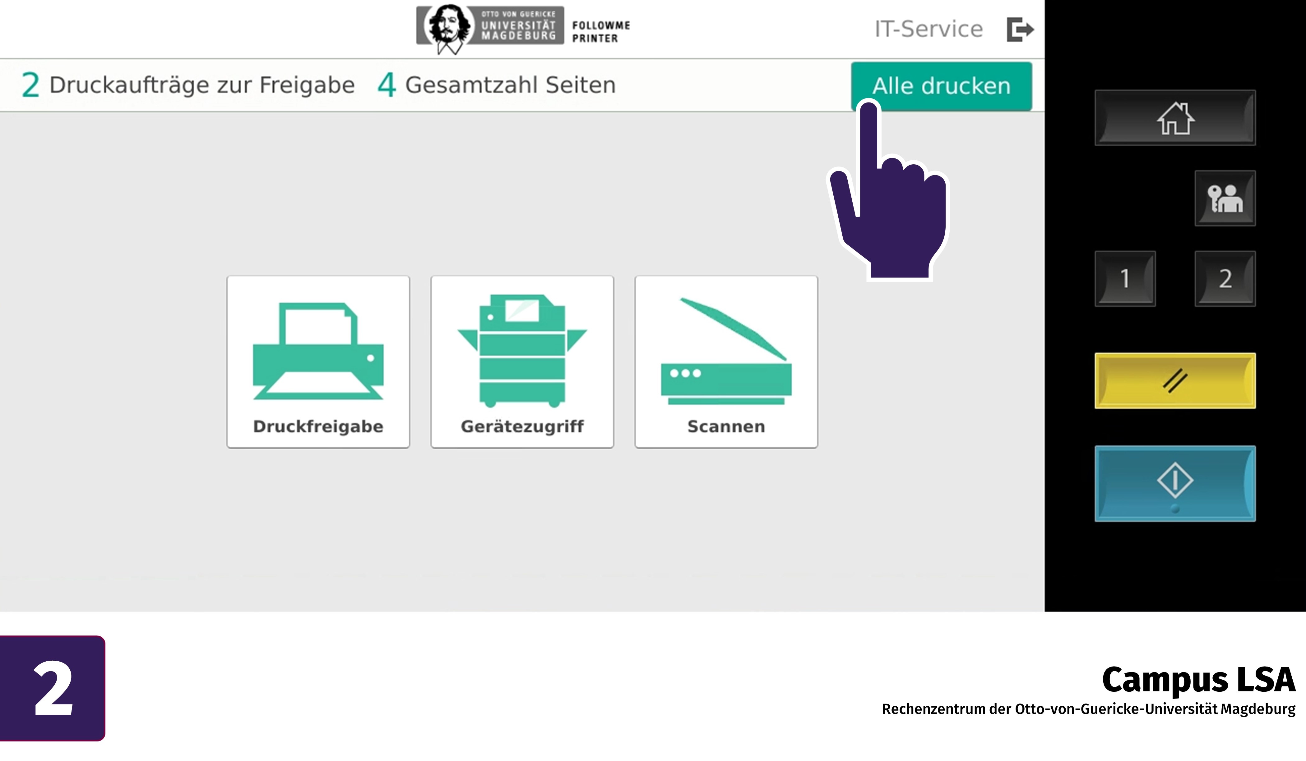 Alle Druckaufträge drucken / Alle Druckaufträge freigeben