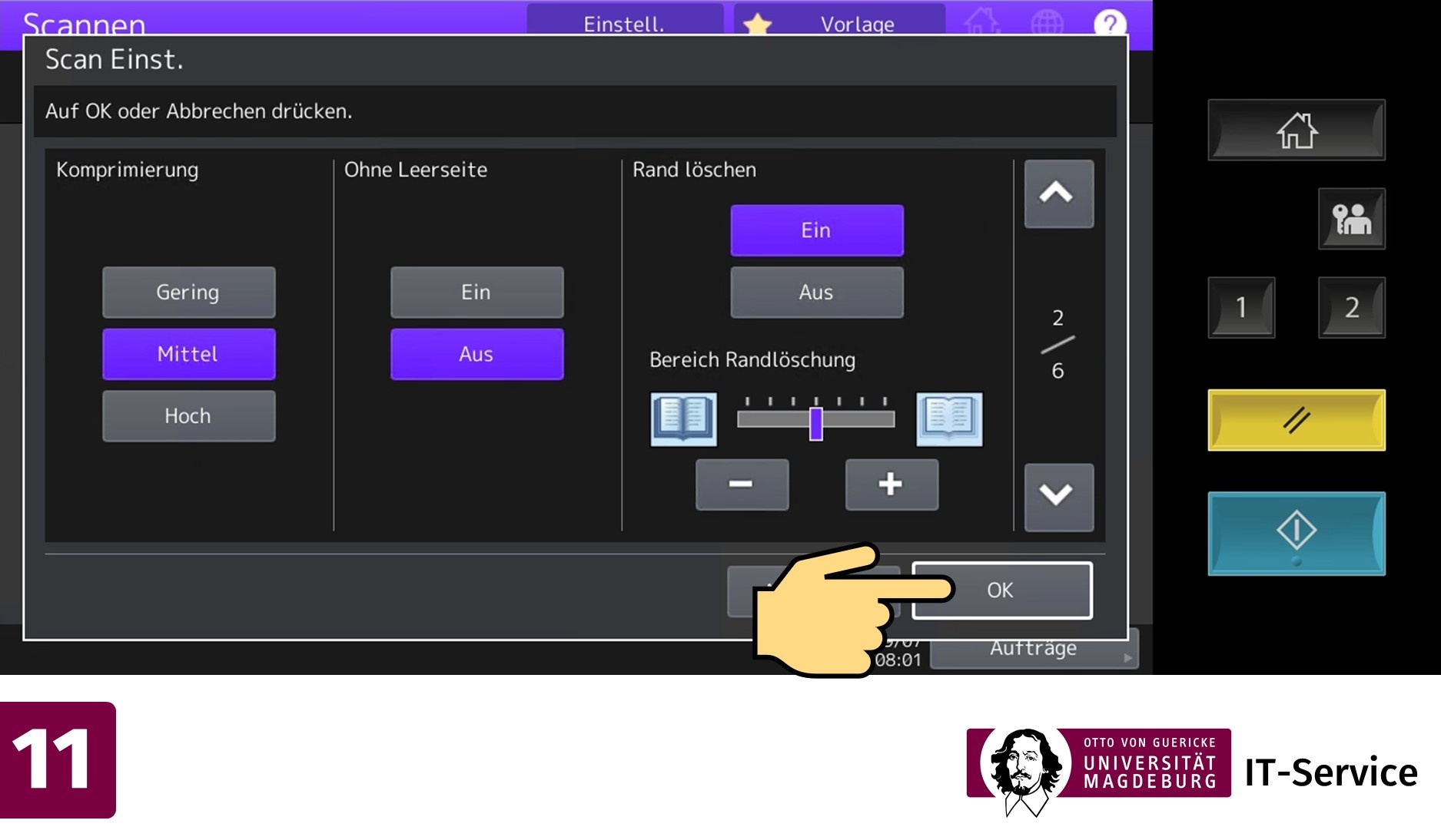 - Bestätigen Sie Ihre Einstellung mit OK.