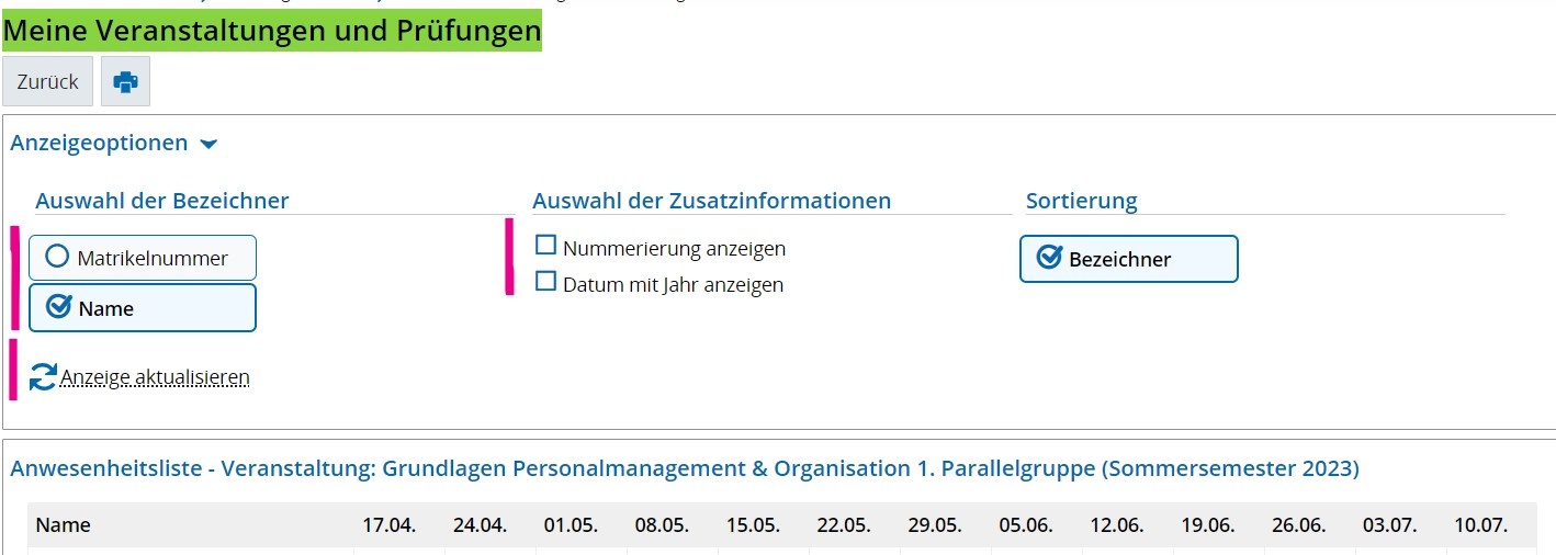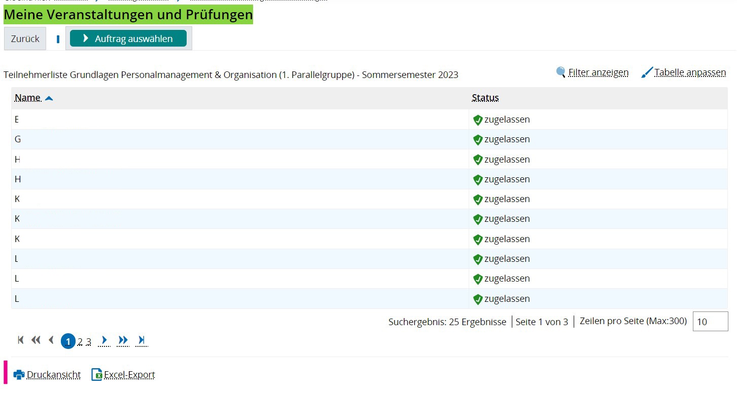 Meine Veranstaltungen und Prüfungen