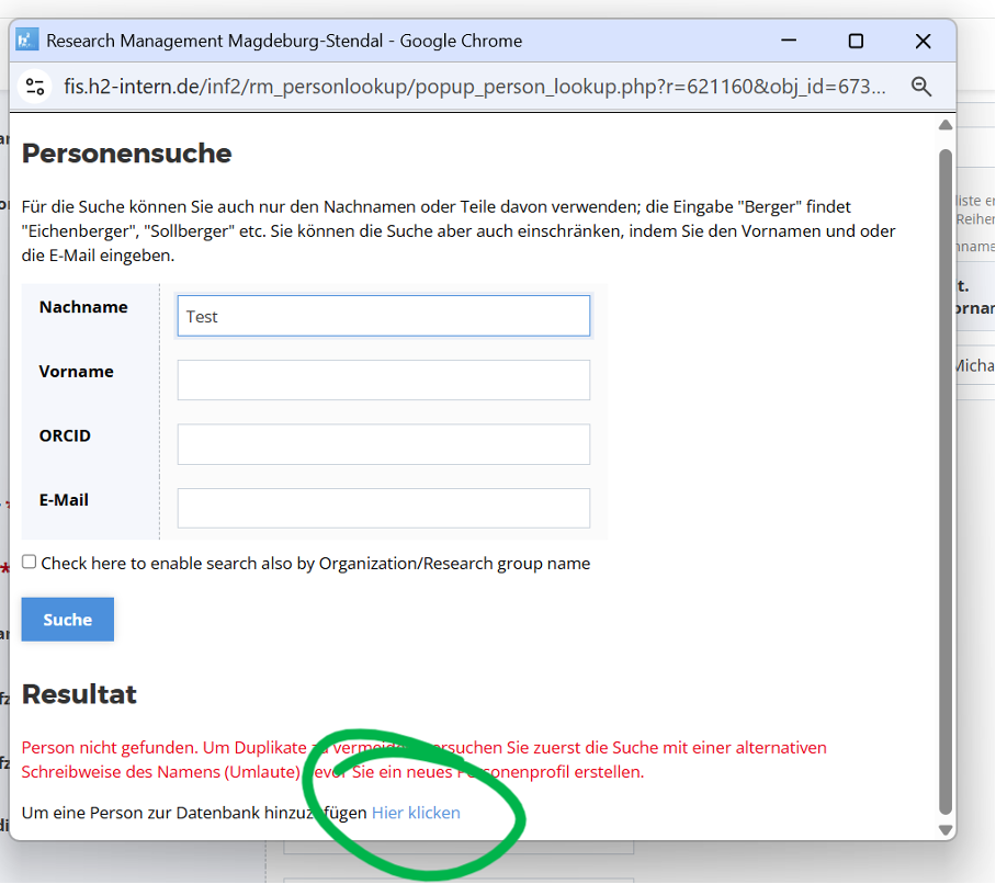 Seite: Applicant database