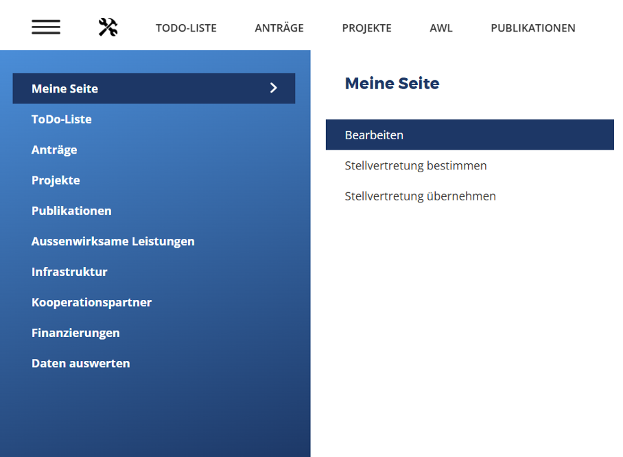 Seite: Dokumentation der Außenwirksamen Leistungen (AWL)