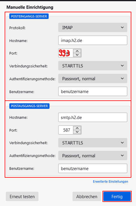 Geben Sie die Daten wie im Bild ein und ergänzen Sie ihren Benutzernamen.